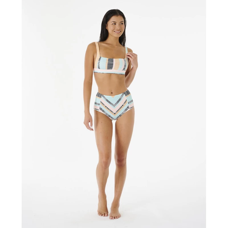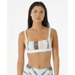 Le modèle Ripple Effect Crop de Rip Curl est un superbe haut de bikini arborant un dégradé aux teintes estivales et offrant un bon maintien, une bande réglable sous la poitrine et un rembourrage amovible.