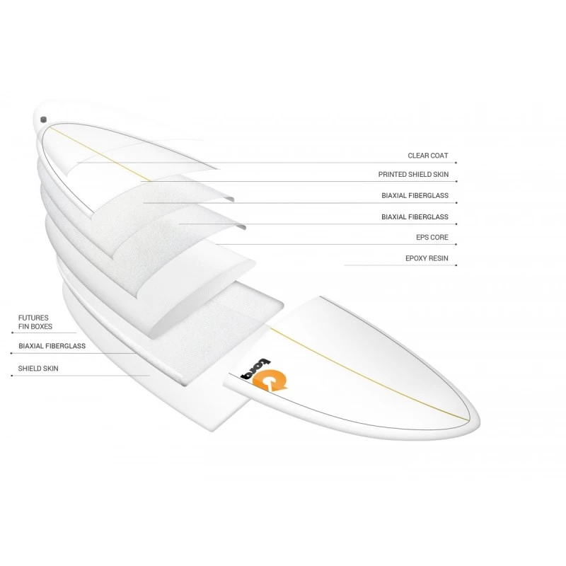Cette Torq Fish est proposée avec 5 boîtiers Futures Fins. Vous pourrez choisir de surfer en thruster (3 ailerons) pour privilégier la maniabilité ou en quad (4 ailerons) pour plus d’accroches et de vitesse. Nous recommandons le thruster qui sera le mix parfait entre maniabilité et accroche.